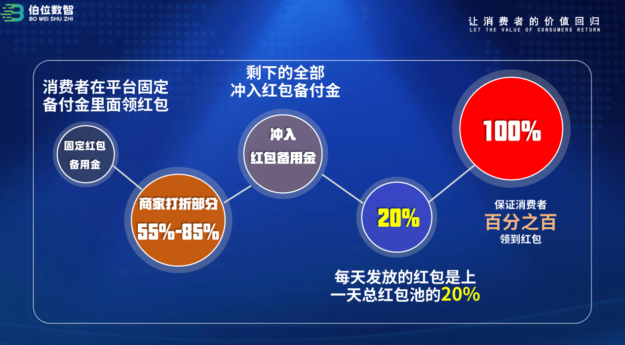 红包经济的合理分配:商家让利的钱里,50%返给消费者,30%给推广团队,20%留作平台技术维护费,还通过控制每日红包发放比例,保证资金池可持续运转;