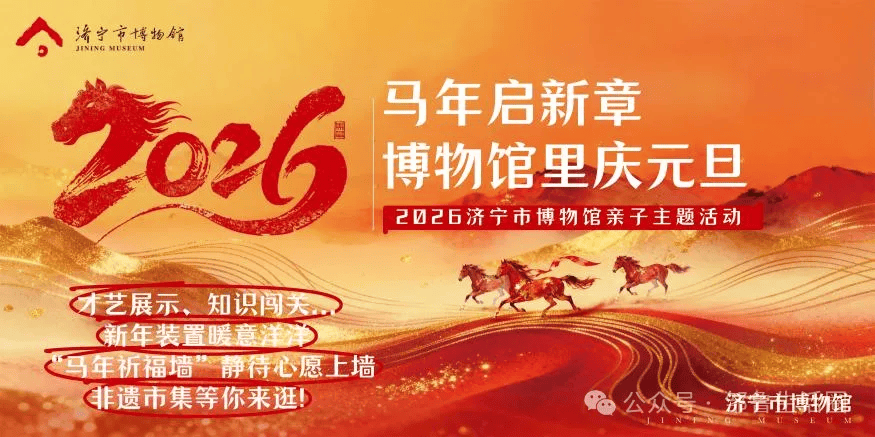 辞旧迎新启新程,文物相伴庆新年!济宁市博物馆用最具仪式感的文化活动,邀你和家人共赴一场亲子之约,让孩子们在欢声笑语中感受历史温度,在知识闯关中收获成长力量,为2026马年写下精彩开篇!1月1日,古槐路馆不见不散~