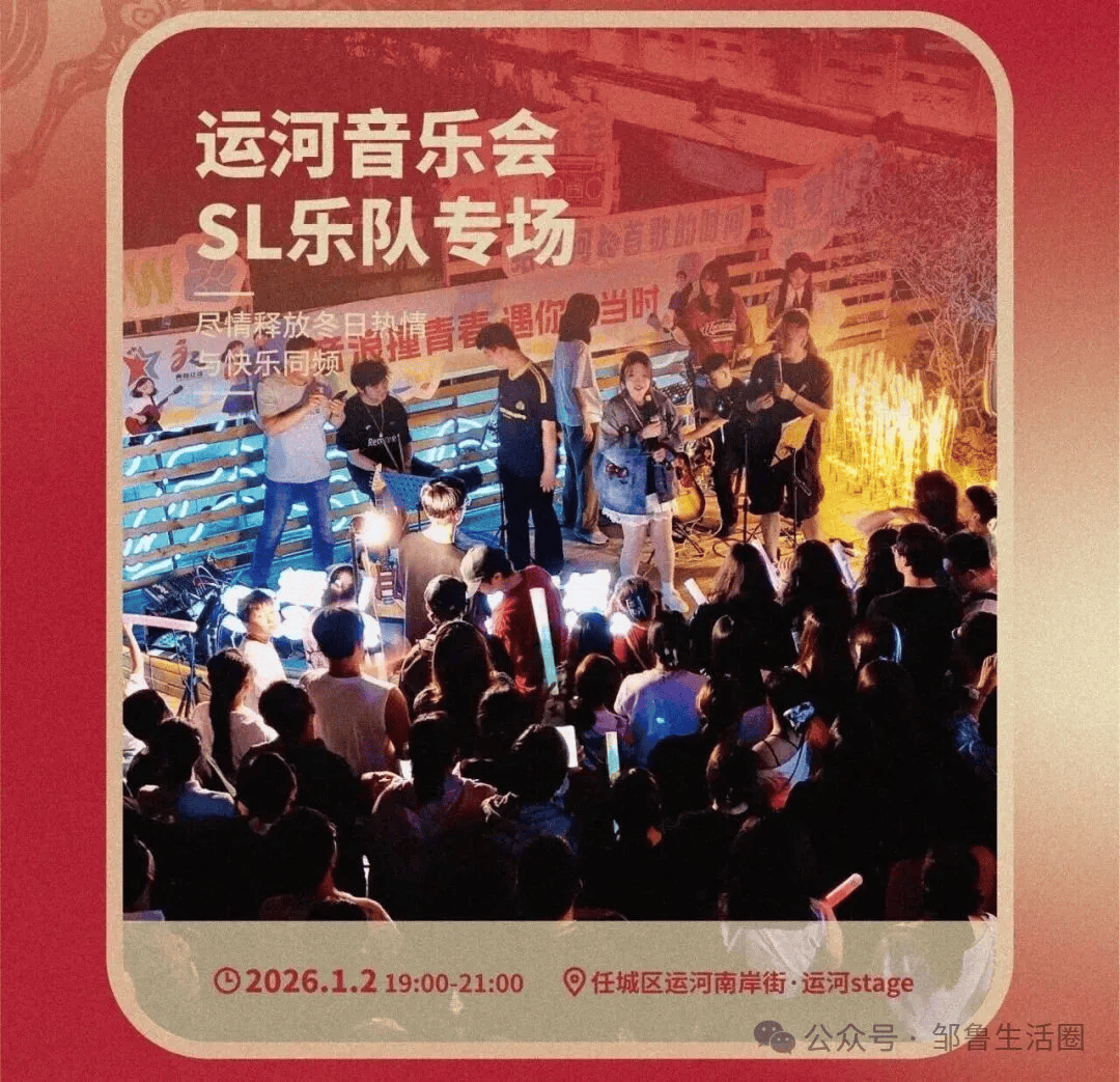 活动内容:牛楼小镇跨年夜活动精彩纷呈,在跨年夜举办一场兼具情怀与温度的原创跨年音乐节,活动既是面向全城的跨年狂欢,更为怀揣梦想、积极上进的本土乐队搭建专业舞台,让原创之声直面大众。陆续开启广场舞大赛与青年交友活动,现场同步开设美食大集,汇聚兖州特色风味与潮流小吃,以音乐联动商户,激活消费活力,为游客献上不一样的跨年体验。