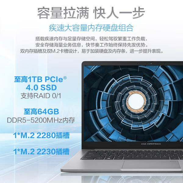 国家补贴20% 15.6英寸轻薄商务办公指纹识别笔记本电脑使用华硕破晓6笔记本电脑,您可以在各种环境中轻松应对工作任务,无论是在家、办公室,还是咖啡厅,工作都能高效进行。它搭载了强大的13代英特尔酷睿i5处理器和16GB内存,加上1TB的快速固态硬盘,确保所有应用程序和文件都能迅速加载,满足重度办公需求。高清1080P摄像头与物理遮盖设计让您的视频会议更加安全和顺畅,AI智能降噪功能提升了通话音质,不用担心嘈杂的环境干扰。