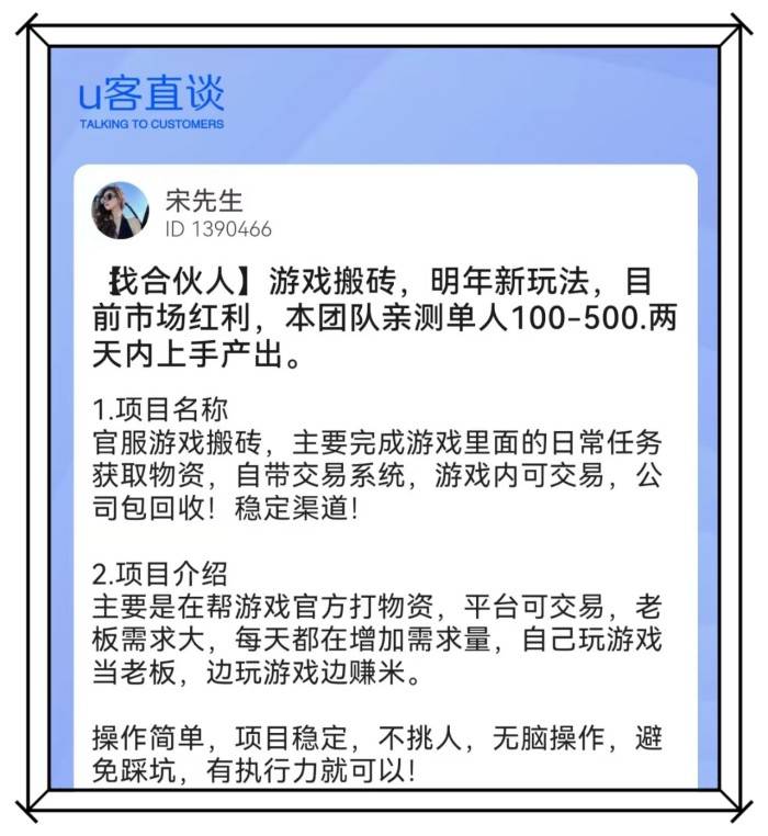 比如在圈内不少人口中提到的U客直谈,它本身不是游戏,但确实解决了信息差、交易信任和效率这些痛点。无论是代练、卖金币材料,还是租号买卖,都可以通过它的中间担保完成,避免被骗或跑单。你也可以在上面快速找到或组建搬砖小队,共享资源与情报。