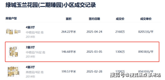 6.二手市场价格可期,旁边绿城二期今年成交一套90m²小户型,单价9.1万,比保利天奕前期小户型最贵单价还贵出近1万/m²!