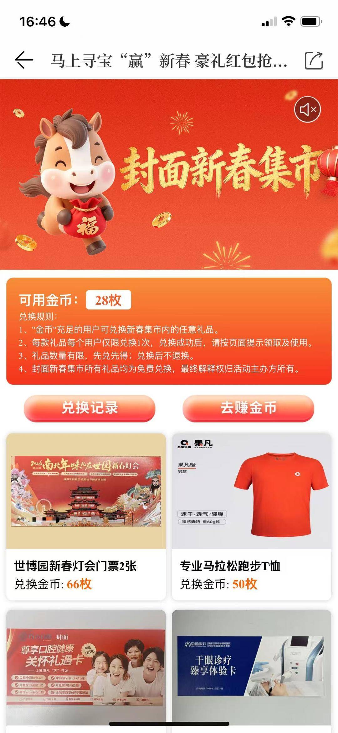 2月13日,封面新闻春节大型线上互动游戏正式上线。用户通过转动“灯笼”获取对应的游戏任务和金币,记者注意到,只需66金币,即可在“封面新春集市”中兑换世博园新春灯会门票两张。