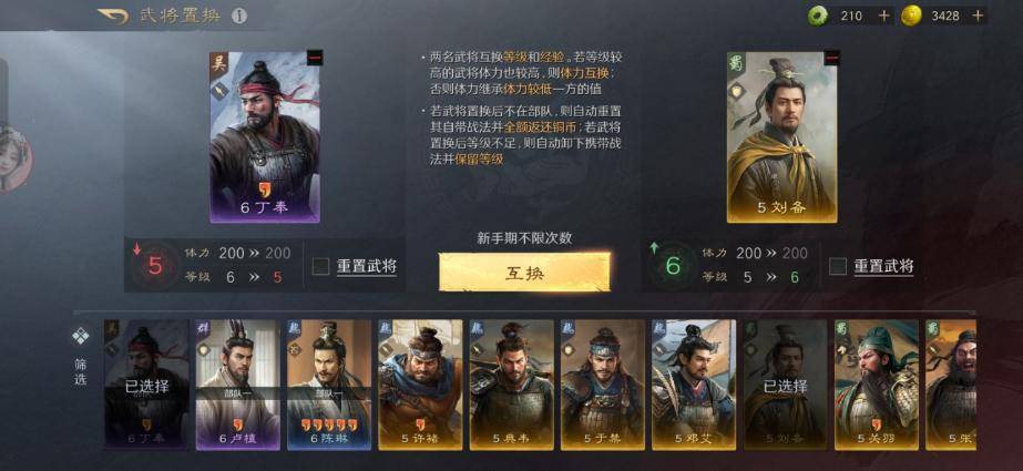 武将等级可无损置换,战法重置仅耗铜币,这大大降低了阵容试错成本。在阵容养成的过程中,大家难免会有尝试不同阵容组合的想法。但在很多游戏里,一旦尝试失败,之前投入的资源就可能白费了。而在《三国:谋定天下》中,大家可以放心大胆地去尝试各种阵容。武将等级无损置换,意味着大家可以根据不同的战局和需求,灵活调整武将的等级分配。战法重置仅耗铜币,也让大家可以轻松地更换武将的战法,找到最适合的搭配。很多老玩家都提到,这个功能让他们在阵容养成上有了更多的发挥空间,能够不断地优化自己的阵容。