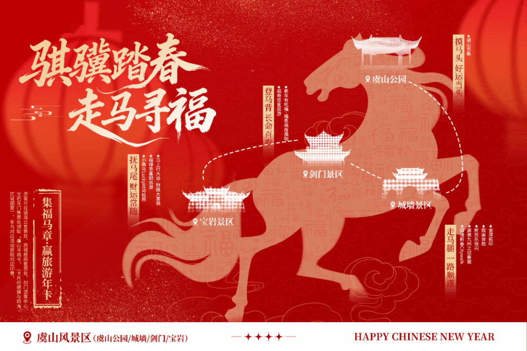 山即为马,首在公园(马头),身披剑门(马背),足踏城墙(马腿),尾扬宝岩(马尾),通过创意舞蹈、民乐快闪、巡游表演、互动打卡等特色活动,让市民游客充分感受虞山福气与运动活力。