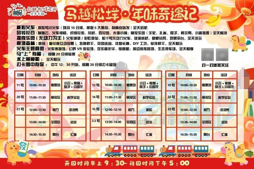 春节期间,景区还将举办“马越松垟·年味奇遇记”活动,不仅有泡泡秀、科学实验、巡游、汇演等精彩节目,还有“马力全开”“马影灯谜”“马住幸福”等互动游戏。